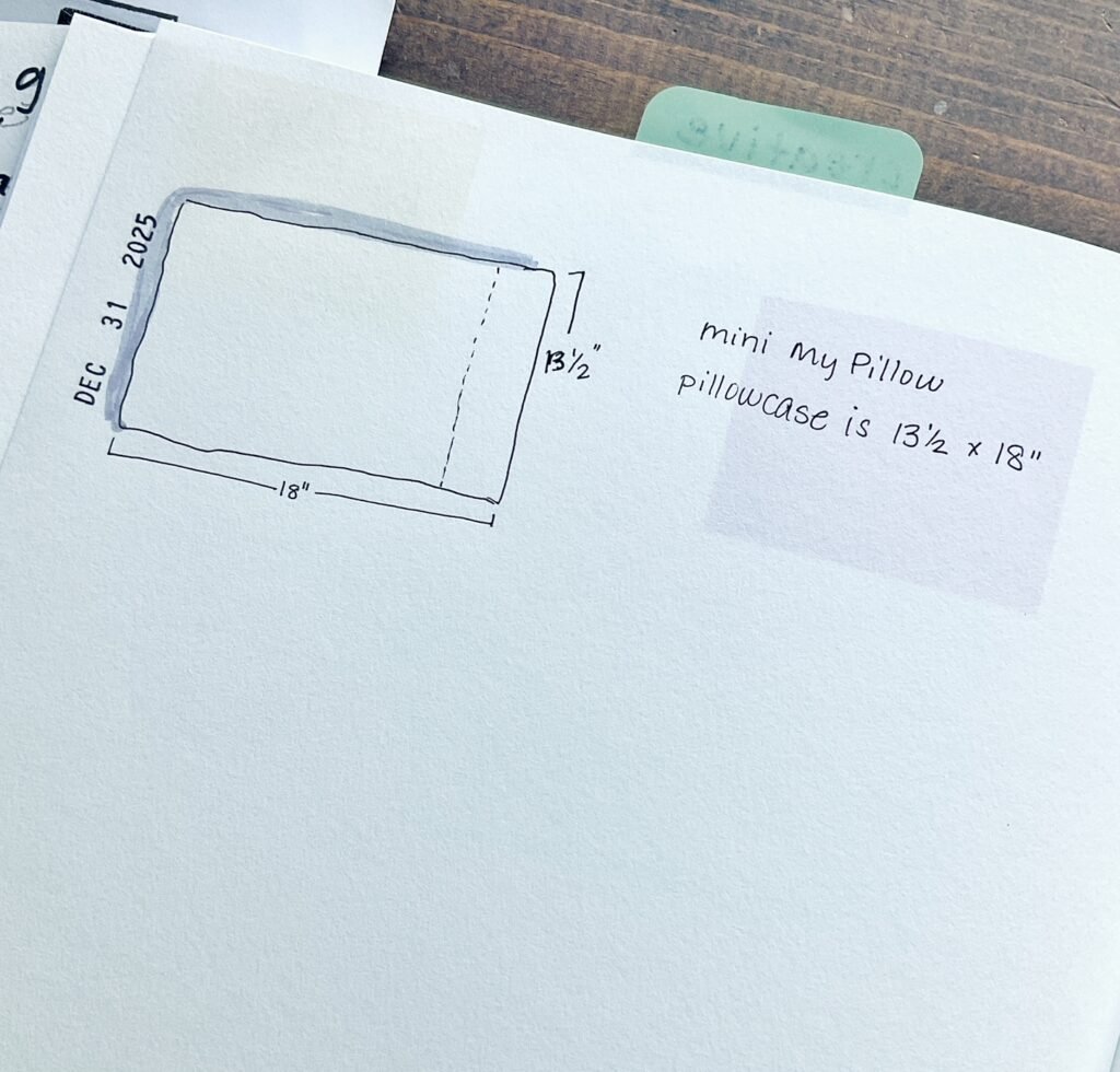 My Creative section will hold anything that I want to do, or come across, or want to remember. I might print some things off, sketch something, or use it for sketching and drawing and watercolor. I’m hoping it will hold information and beauty and just be fun to flip through at the end of the year. Right now I just have notes for what size to make pillowcases for my granddaughters.