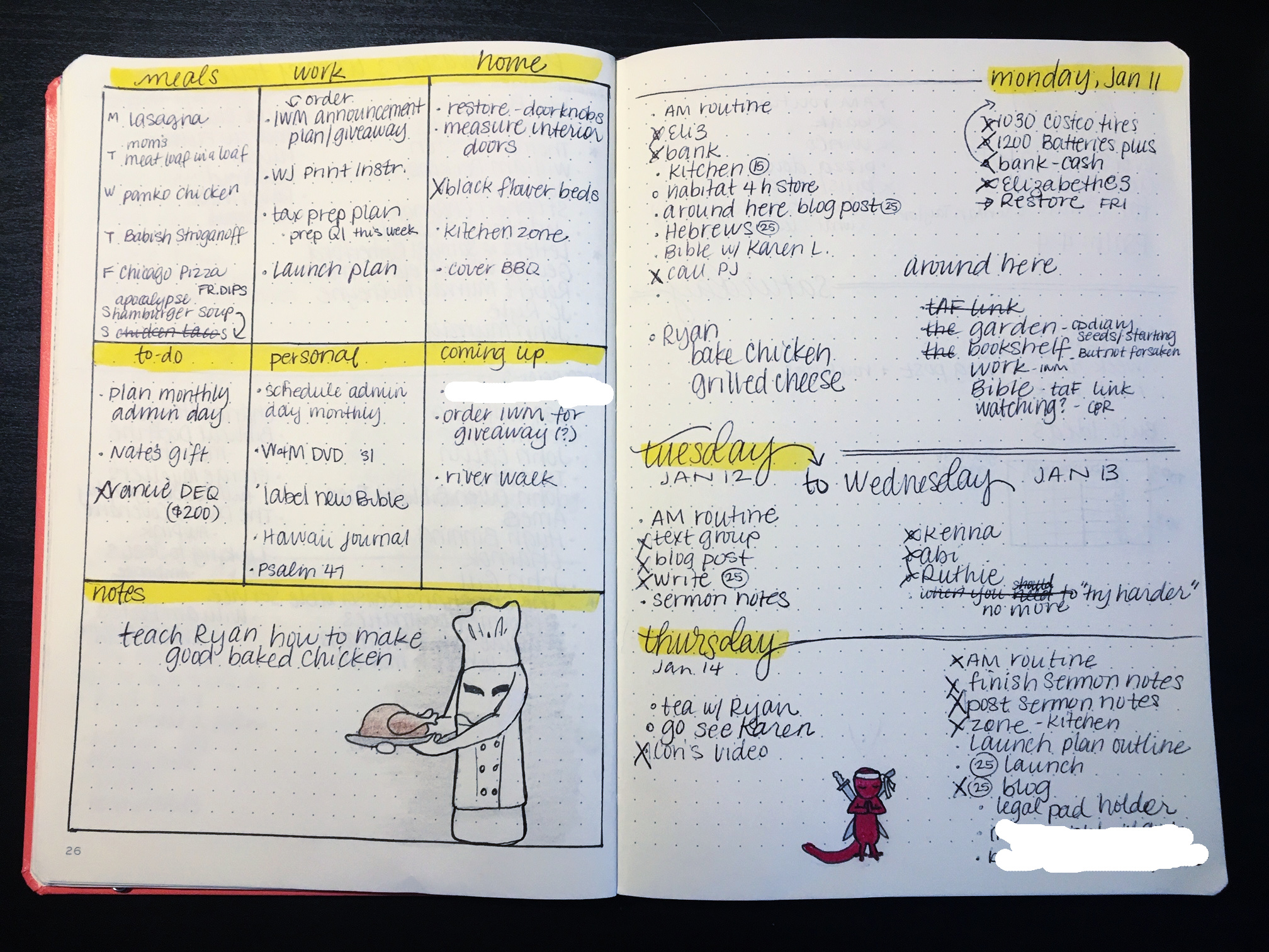 Here are my weekly and daily bullet journal pages, nothing amazing and not very productive overall. But I did get a few big things marked off the list.