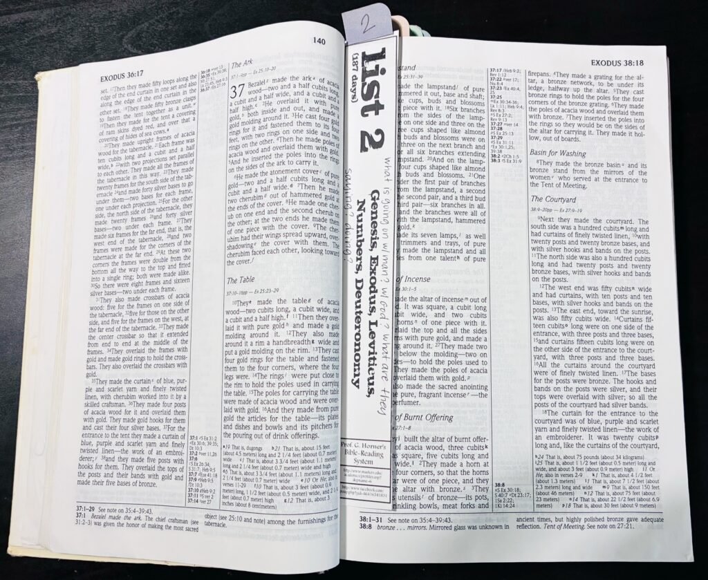 This year, however, I’m switching from my regular take-to-church Bible (NASB) and reading the lists from my very first Bible, a 1985 NIV. At the first of the year I moved all my bookmarks to the NIV and just kept on reading where I left off.