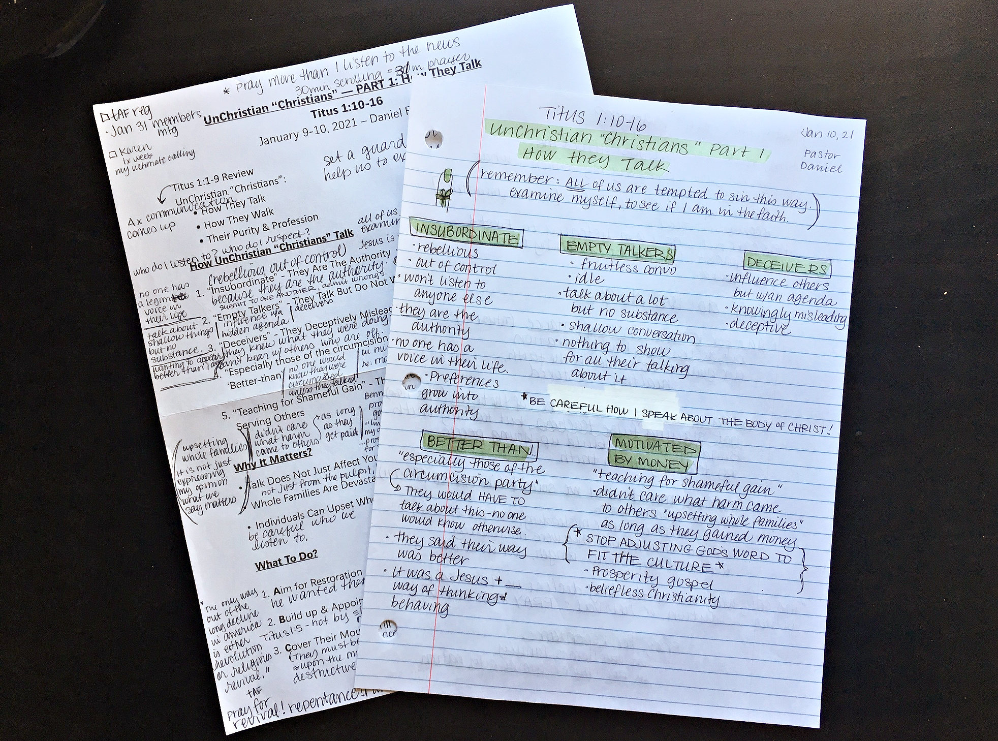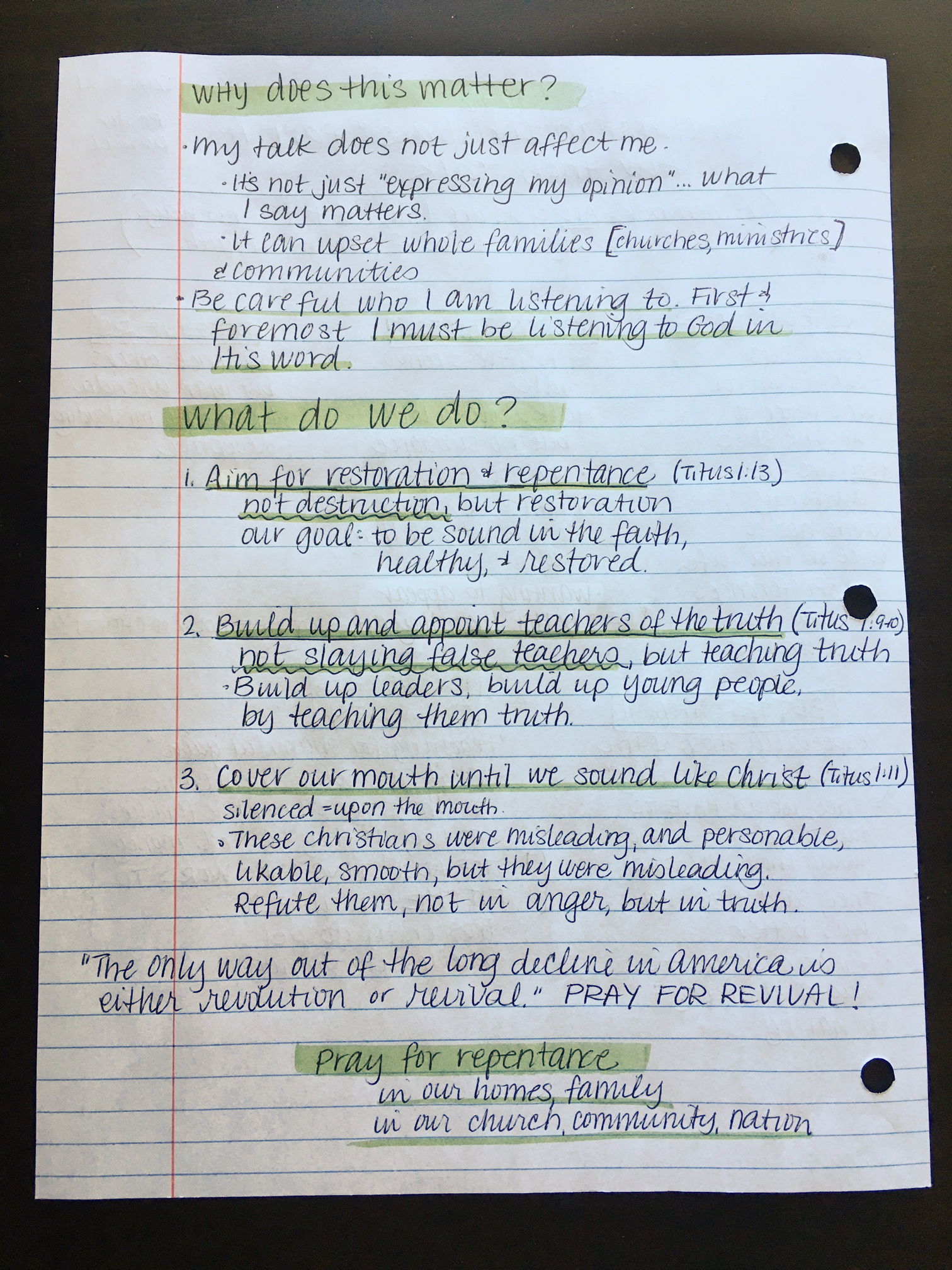 The important thing to remember when listening to any sermon or reading any notes is that we are often tempted to think of other people who this reminds you of. But the better (and harder) part is to find these same sins and shortcomings in yourself and ask God to change your heart.