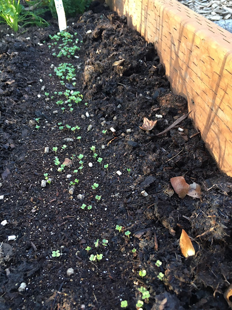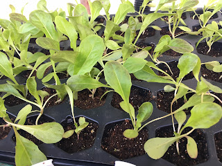These are lettuces that I sowed in that same plastic bowl above, pricked out, and put in these modules. They are doing very well! I’ll probably transplant them in a week or two into the garden beds.